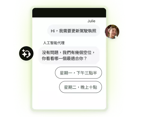 使用人工智能代理來處理常見問題,例如證照狀況、福利資格或預約安排。