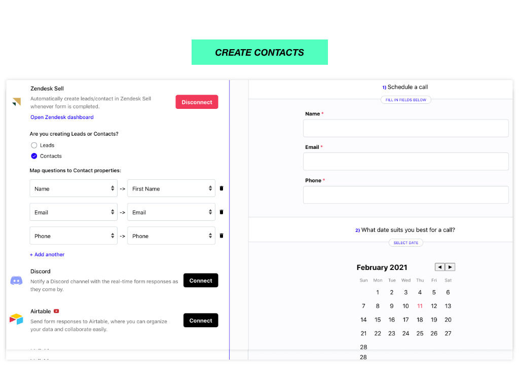 Form responses are automatically synced to Zendesk Sell as contacts or leads.