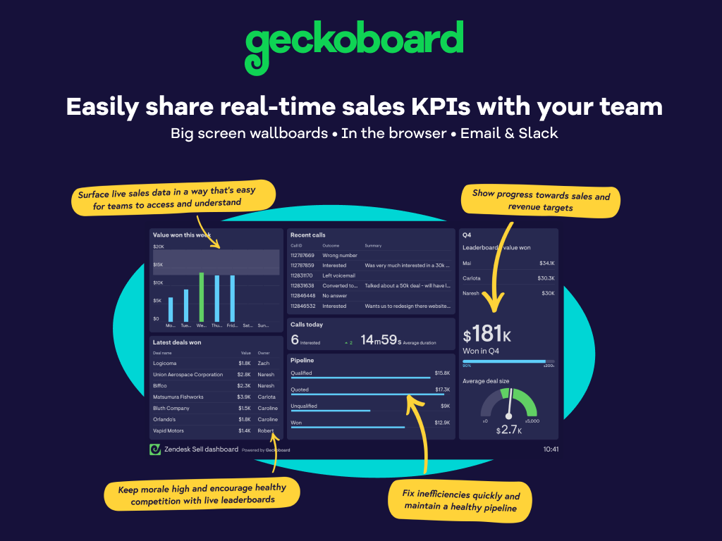 NB: With the announcement that Zendesk Sell will be retired, you might want to check out Geckoboard’s Pipedrive integration instead.