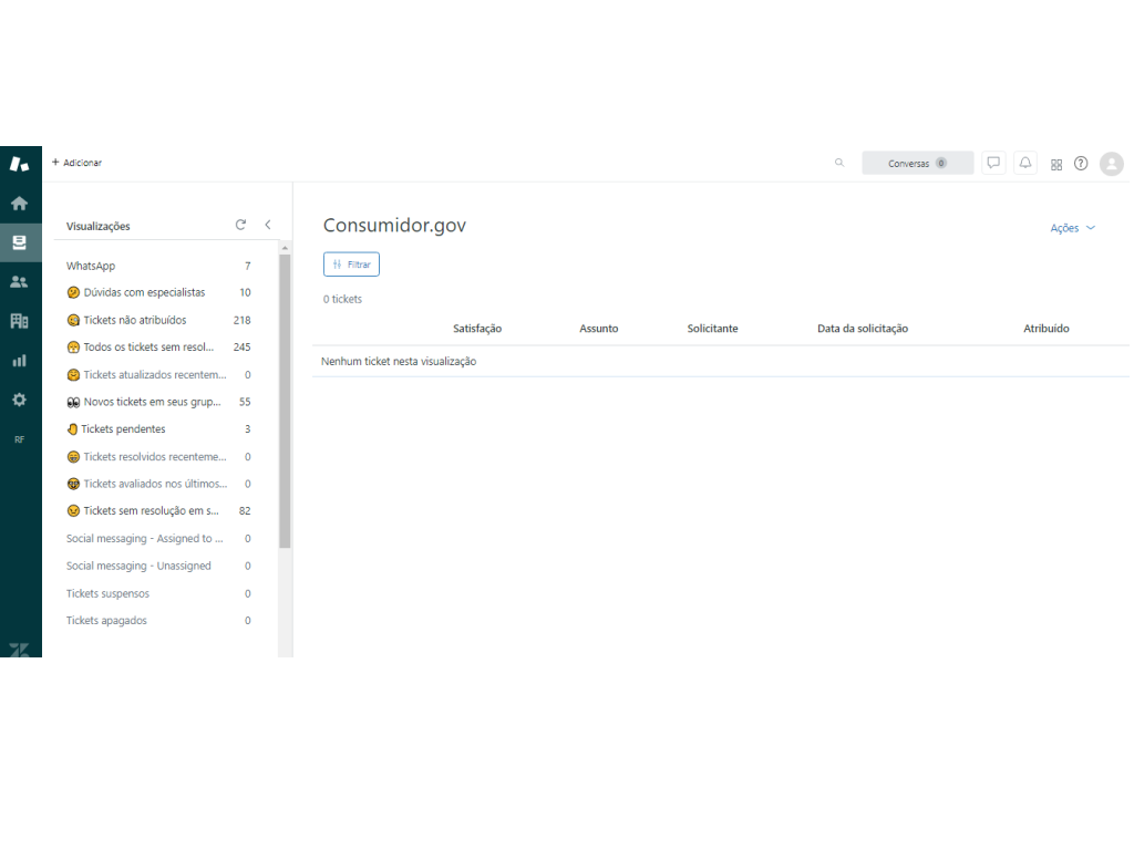 Gerenciamento os tickets do Consumidor.gov da mesma maneira que os tickets de outros canais;