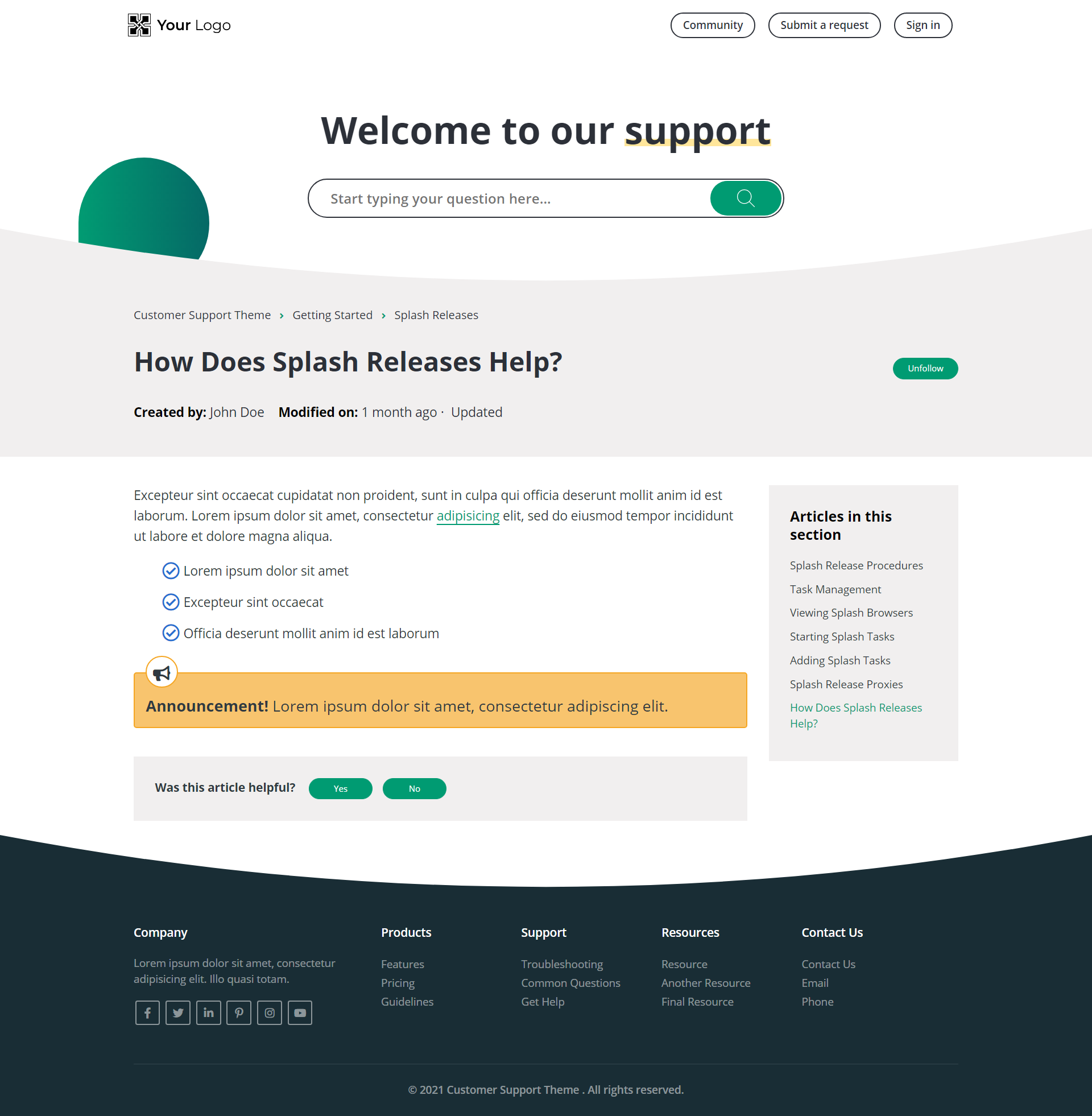 Best theme I've ever downloaded on Zendesk Marketplace. Fits my exact needs perfectly. Plus when you have support activated the team get back to you quickly.