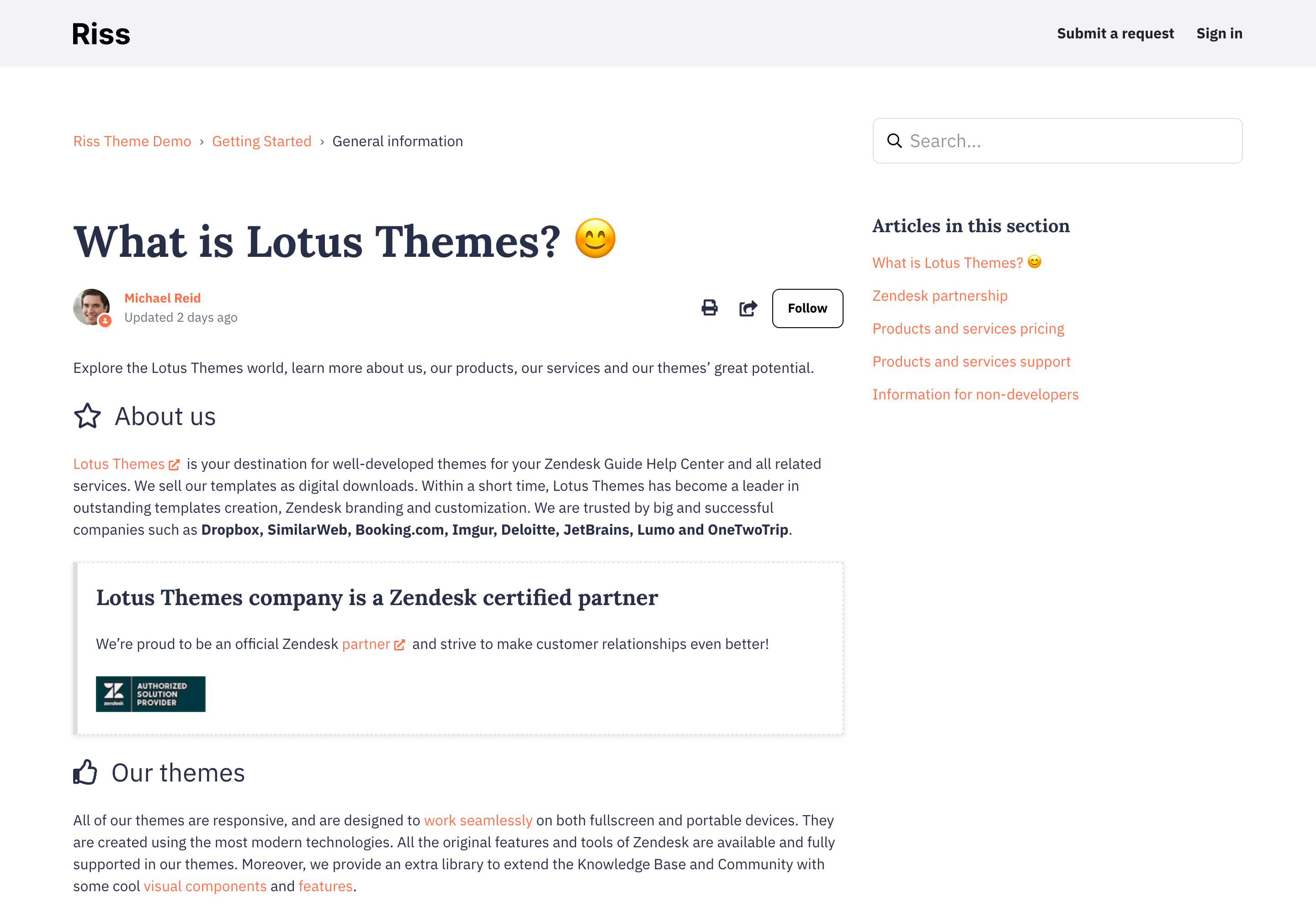 Lotus Themes, Zendesk partner